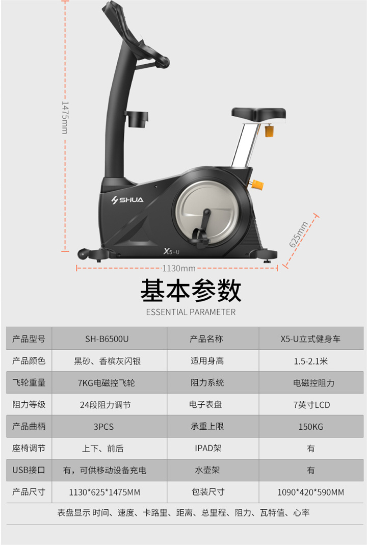 舒華立式健身車(chē)SH-6500U(X5-U)采用自發(fā)電,曲軸達3PCS,電控的阻力系統,設有24段阻力等級,擁有7.5kg的磁控輪。