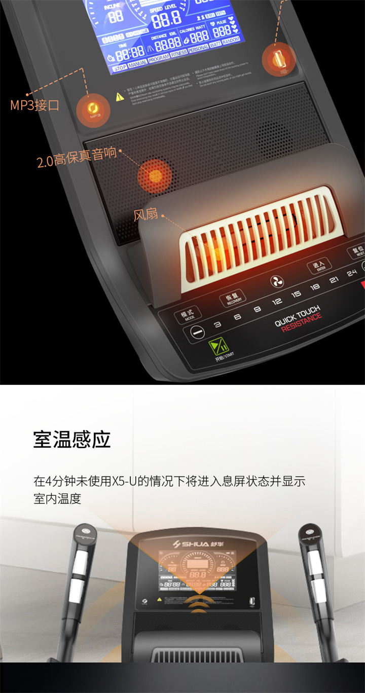 舒華高端跑步機SH-T9100T(V10+)擁有超大高清32寸10點(diǎn)觸控晶屏的工業(yè)屏,具有掃碼、刷卡、人臉識別等多種智能登錄方式,方便快捷,并且有在線(xiàn)教學(xué)、專(zhuān)業(yè)健身模式隨意切換,讓您開(kāi)啟科學(xué)健身。