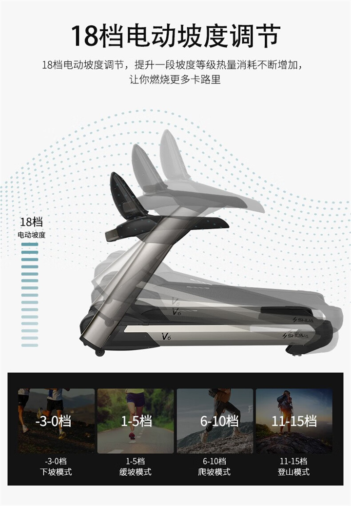 舒華跑步機SH-T5500采用T18mm的跑板,T1.6 鉆石紋的跑帶,運用6位硅膠減震,對您跑步中的膝蓋進(jìn)行全方位的呵護,選用手握心率測試,跑步面積達480×1350mm,可承受126kg的使用者使用。