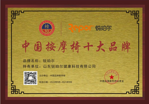 銳珀爾按摩椅在2020年被評為中國按摩椅十大品牌之一